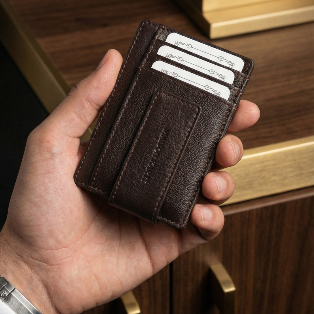 Premium Leather Card Holder with Metal Money Clip
